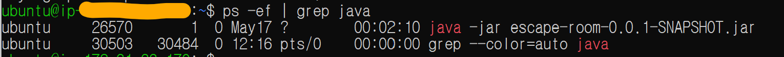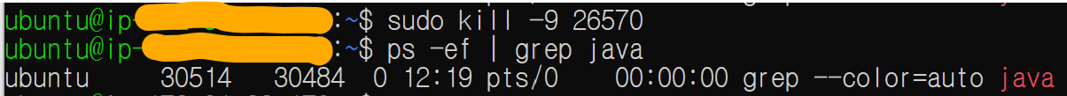 $ ps -ef | grep java 로 확인해보면 잘 종료된 것을 알 수 있다 ! ㅎㅎ