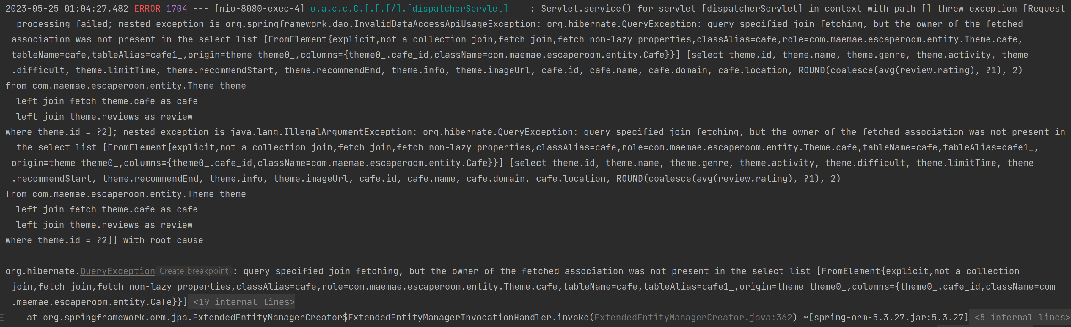 fetchJoin() 에러 발생 - 인프런 | 질문 & 답변